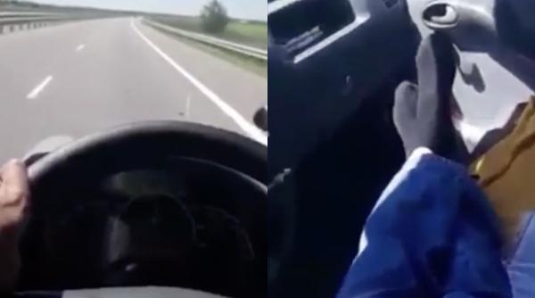 Imaginile inconștienței la volan: Un șofer român s-a filmat conducând pe autostradă cu picioarele pe scaunul din dreapta20 Mai