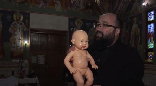 Preotul Visarion Alexa arată care este tehnica corectă a scufundării bebeluşului în apa din cristelniţă: ''Nici trei secunde nu durează''01 Feb