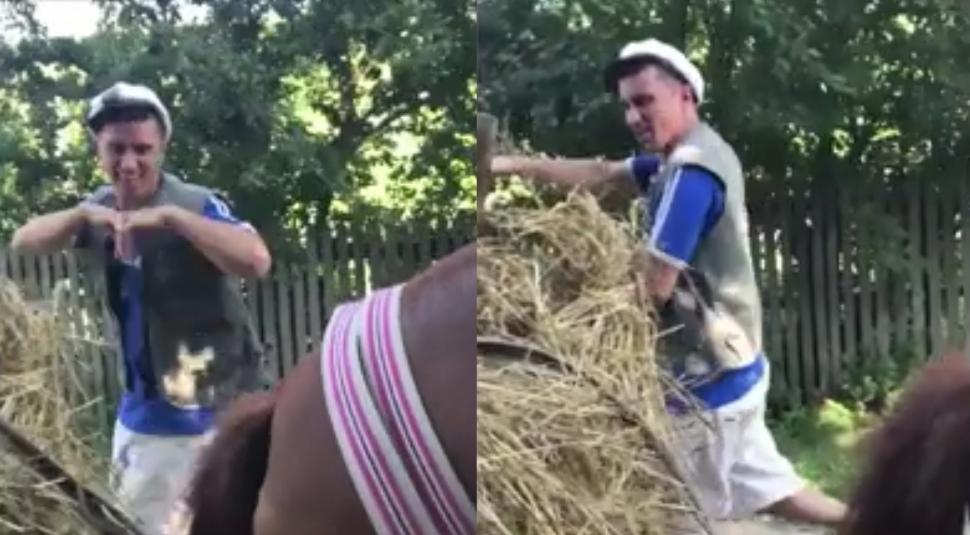 Imaginile virale din întreaga lume l-au inspirat şi pe un bărbat dintr-o zonă rurală a României, care a făcut o filmare alături de calul său. Săteanul s-a dat jos din căruţă şi a început să îşi onduleze corpul pe ritmurile celebrei melodii.