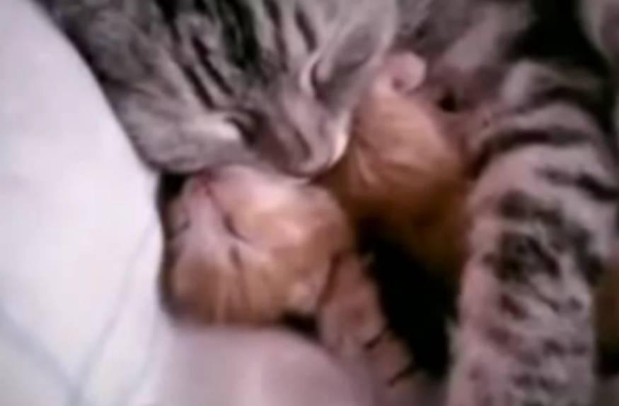 Dragostea şi afecţiunea pisicească sunt surprinse din nou pe imagini. De data aceasta, vom vedea modul în care o femelă îşi simte şi îşi protejează puiul.