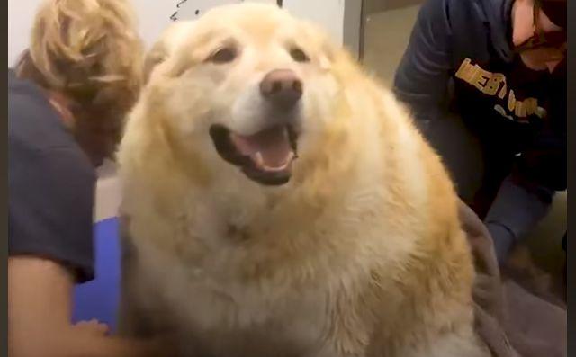 Pentru a avea o greutate normală rasei lui, cățelul ar fi trebuit să aibă cu 45 de kilograme mai puțin.