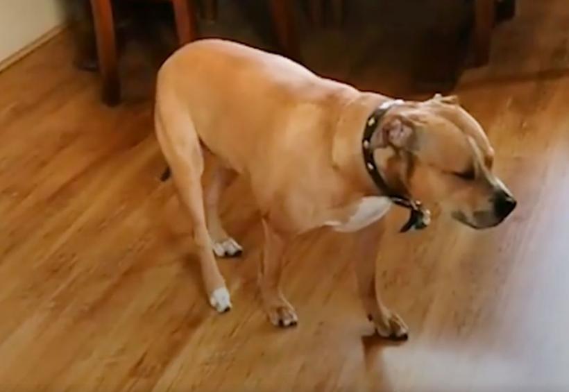 „Avea în jur de șapte luni și era în bucătărie și l-am privit cum mergea tiptil până la bolul său cu mâncare. Mi-am spus că ceva e în neregulă cu acest câine, l-am dus la veterinar, au zis că totul e bine. El face asta când încearcă să fure mâncare”.