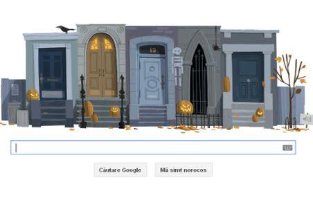 Noul logo al Google prezintă un desen în care sunt surprinse intrările în mai multe case, pe un fundal întunecat. Logoul este însoţit de un fundal sonor demn de o sărbătoare precum Halloween-ul. Astfel, în urma unui click, uşile se trântesc puternic, în cadrul lor arătându-se personaje care scot sunete înfricoşătoare. Un schelet uman îşi mişcă oasele în bătaia vântului, un corb se plimbă pe deasupra caselor, iar o pisică neagră sare dintr-un tomberon. Din "peisaj" nu puteau lipsi dovlecii, prezenţi pe fiecare scară a caselor, remarcă Mediafax.