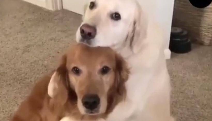 După ce i-a mâncat toată mâncarea prietenului său, un Golden Retriver simpatic a început să se simtă vinovat.