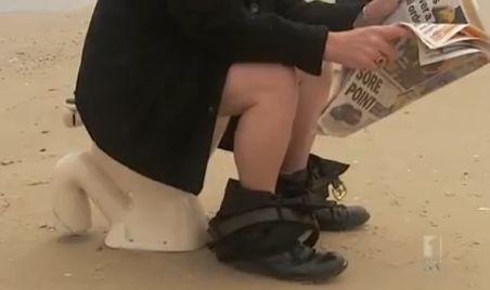 Îmbrăcate la costum, 12 figuri publice din Adelaide, împreună cu artistul care a organizat acest protest - sculptorul Andrew Baines - , şi-au dat jos pantalonii în public şi s-au aşezat pe vasele de toaletă din dotare chiar pe plaja Henley, pentru ca mesajul să aibă un impact mai puternic asupra autorităţilor, scrie huffingtonpost.com.