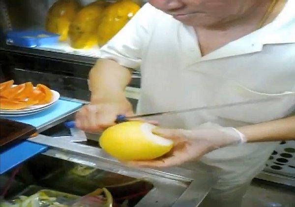 A făcut deja o demonstraţie despre cum se îndepărtează coaja unui măr fără a irosi prea mult fruct, în piaţa Bugis din Singapore, iar filmarea a fost urcată pe YouTube. Important de ştiut: viteza de redare a clipului nu a fost mărită, ci este cea originală!